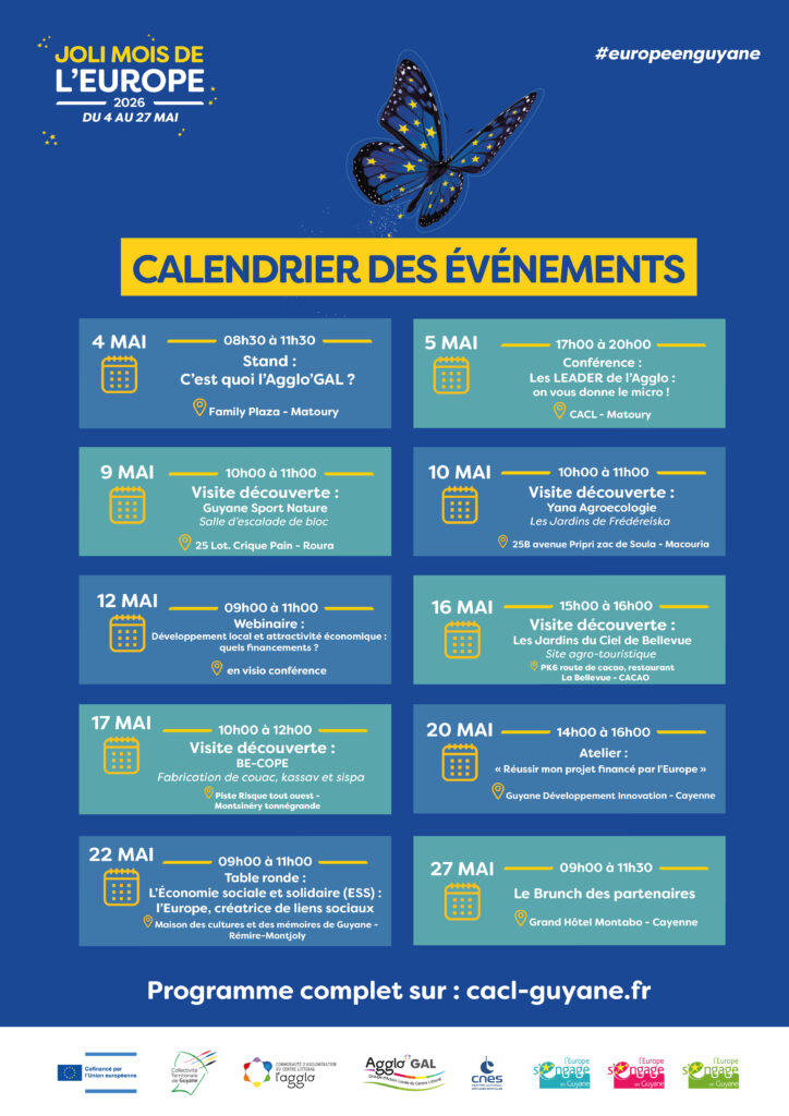 Du 4 au 31 mai 2026, l’Agglo’GAL, Groupe d’action local de la CACL, valorisera les projets soutenus par les fonds européens à travers une programmation d’évènements variés. L’occasion pour le public de (re)découvrir les programmations LEADER et Objectif stratégique 5 (OS 5) portées par la cellule, célébrer les réussites locales, faire connaître les projets financés, partager des témoignages concrets de la programmation passée et (re)présenter les axes d’intervention de la programmation 2023-2027.