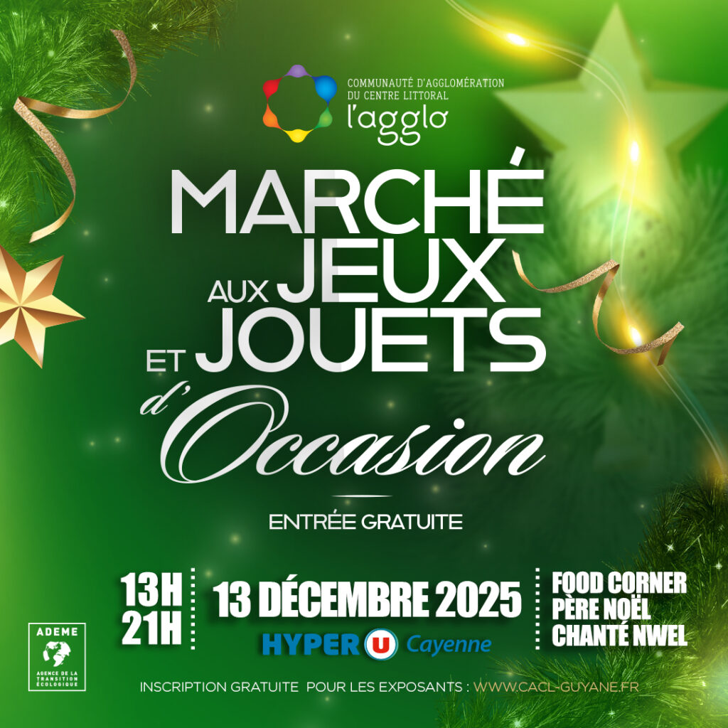 La CACL organise sa 16e édition du Marché aux jeux et jouets d’occasion, le samedi 13 décembre 2025 sur le Parking d’Hyper U Cayenne. De 13h à 21h, profitez d’une…